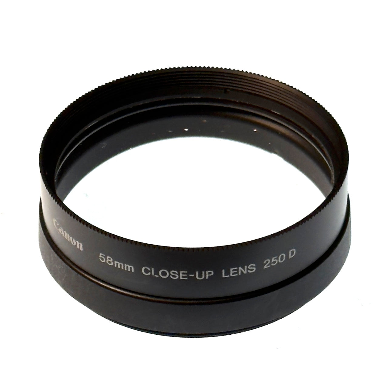 The Canon 250D lens is a high quality doublet lens designed to work with lenses between 35mm and 135mmmm focal length. Because this is a thread-on diopter, you can use it on any brand of lens with a 58mm filter diameter- not just Canon. In excellent condition.