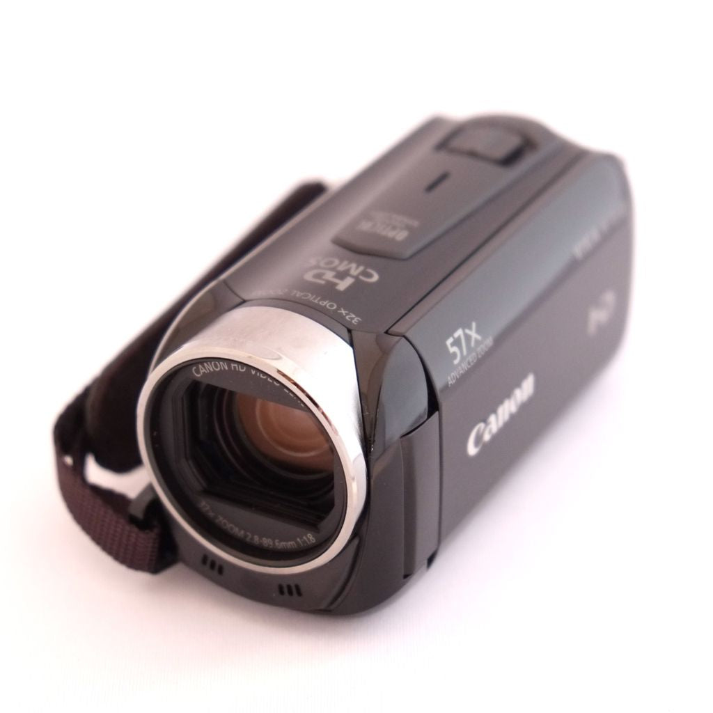 The Canon HF-R video camera is a very compact, all-in-one video camera with 32x optical zoom, image stabilizer, and full 1080P recording (including 1080P/24). Records onto SD card (included). Easy to use. This camera is supplied with: