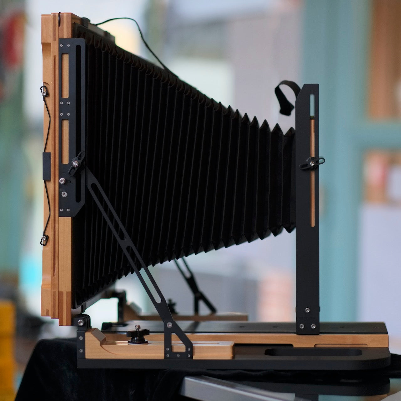 The Chamonix 11x14 View Camera is an ultra large format camera that shoots 11x14 sheet film (or paper, or plates, or what-have-you). Made by hand from carbon fibre and hardwood, this camera is in excellent cosmetic condition, with a clean ground glass and a genuine Chamonix Linhof lensboard adaptor. Comes with three wood 11x14 sheet film holders (not Chamonix brand) as well as a custom hard case for the camera body measuring 52x52x20cm. Lens is not included. Overall a beautiful piece of equipment for those extra large negatives.