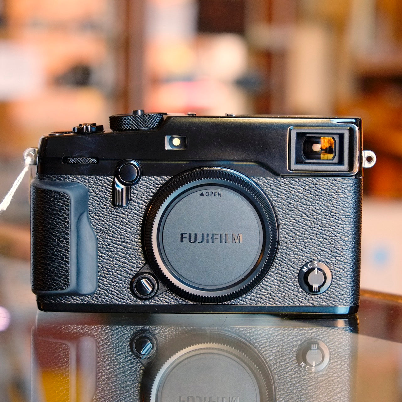 The Fujifilm X-Pro2 is a profesional mirrorless camera with a 24mp X-Trans sensor and a hybrid optical/electronic viewfinder. Compatible with the full line of Fujinon XF lenses (not included), the X-Pro 2 provides speedy phase-detect autofocus; for use with adapted classic lenses or in manual focus mode, there are several options for focus assist, including peaking and a nifty video inlay on the optical viewfinder. This X-Pro2 is in excellent condition, with minor cosmetic wear. Includes battery, charger, strap, instructions, and original box.