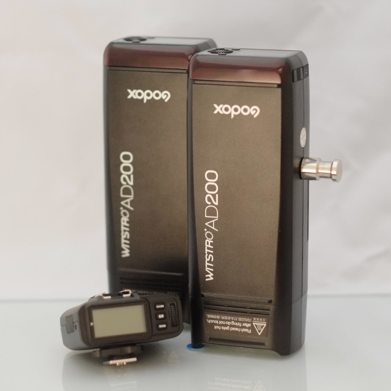 - 2 Godox AD200 flash units with standard heads