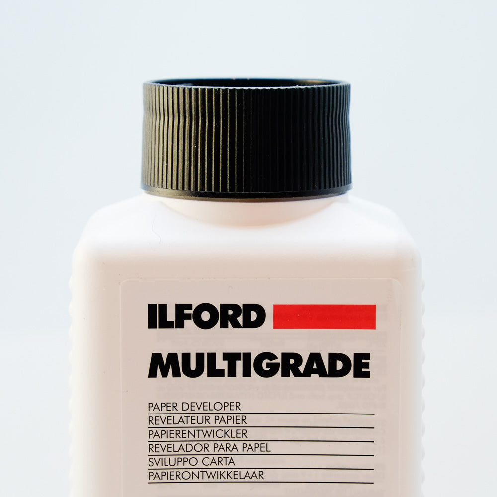 Ilford Multigrade developer concentrate for black & white paper. 500ml bottle. This developer is designed for use on photographic paper only, not film.