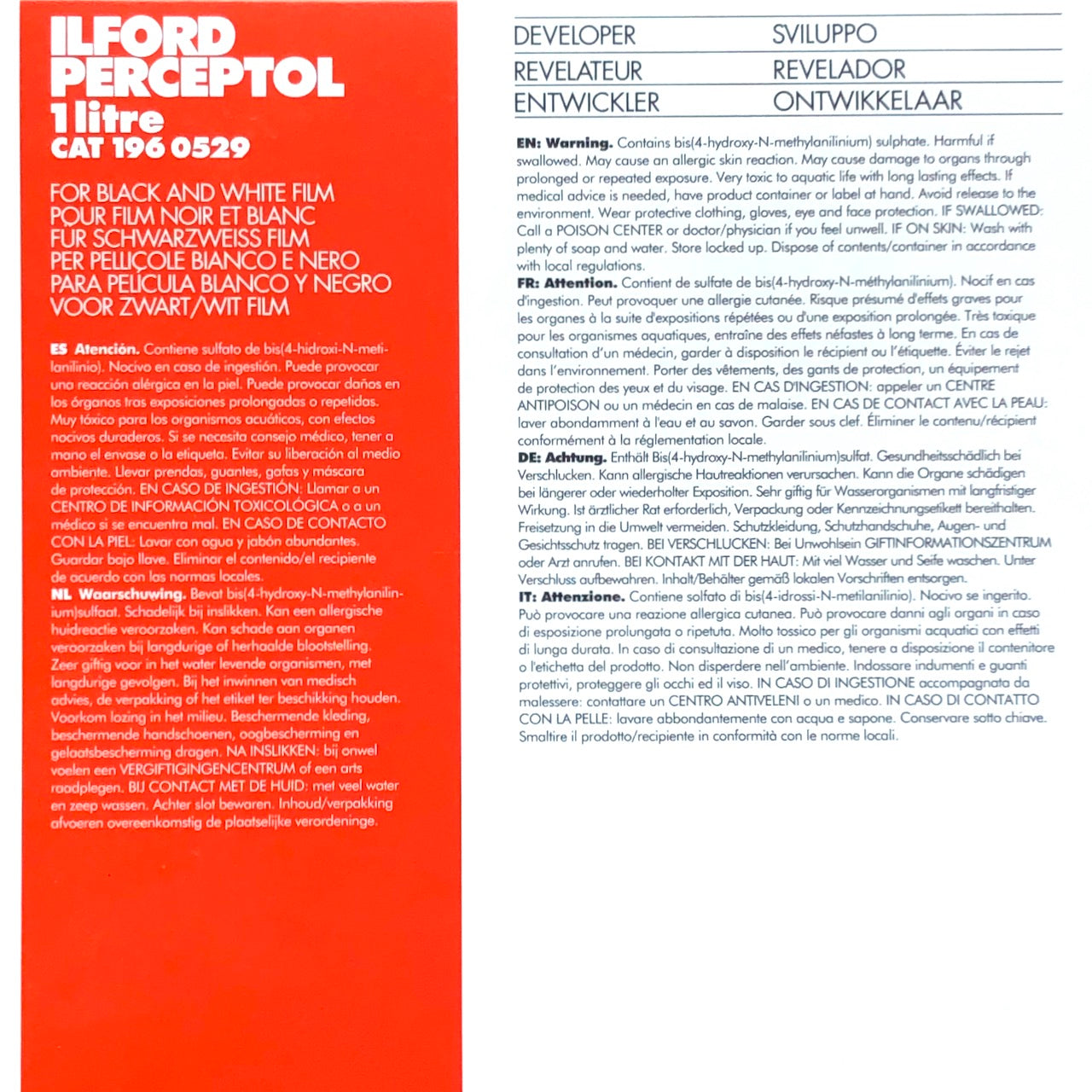 Ilford Perceptol is a film developer designed to provide very fine grain and high sharpness. It works best with low-speed film, but can be used with fast stuff too (if you don't mind the long developing times)