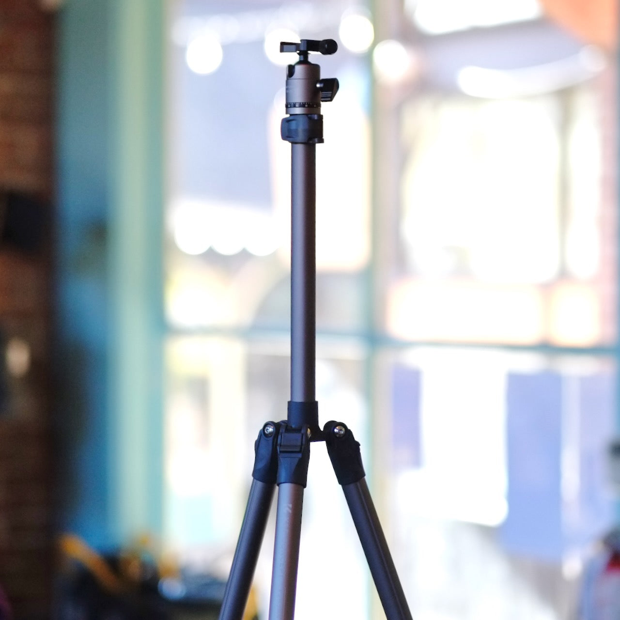 The K&F Concept F263A4 is a lightweight travel tripod with a pretty decent little ball head. It's strong enough for most DSLRs, though this isn't a monument: it's a pretty simple little tripod with aluminum legs and plastic hardware. That big "centre column" does not retract, so minimum height in normal configuration is about 80cm. It's obviously a budget tripod, but it's better than most at this price point.