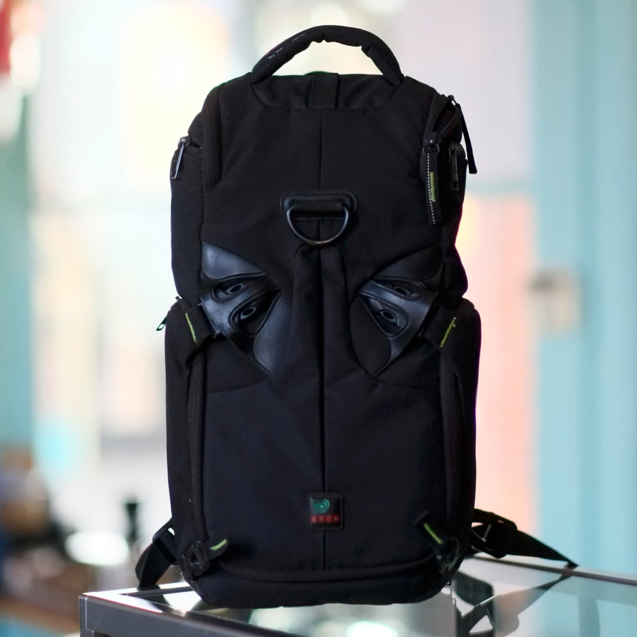 The Kata 123-GO-10 is a well-made midsize backpack sized to hold a DSLR or mirrorless system. Like all Kata bags, it's a bit weird: you can reconfigure it to work as a sling bag, and the main compartment has a multi-access system that can open from either side or from the front, depending on how you configure the zippers and buckles. There’s a second compartment for personal items and a couple of exterior pockets, too. In good condition, with minor signs of cosmetic wear. Interior dimensions of gear compartment are approximately 24 x 32 x 14cm.