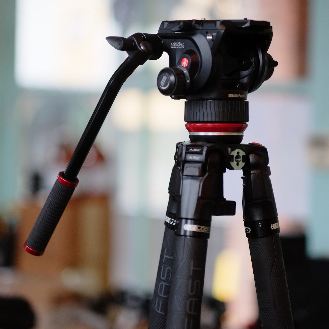 The Manfrotto 635 Fast is a lightweight carbon fibre video tripod with a unique, quick-deploying "single action" leg lock that Manfrotto calls the FAST Twisting Lock. And it is fast! one twist lets loose both leg extensions, one twist locks them. It's great for on-location shooting when you don't want to spend all day setting up. Includes a very nice 504X fluid head, which has adjustable drag on pan & tilt axes and a 4-stage counterbalance system. In excellent condition, with a plate and carry bag. This system supports up to 12kg.