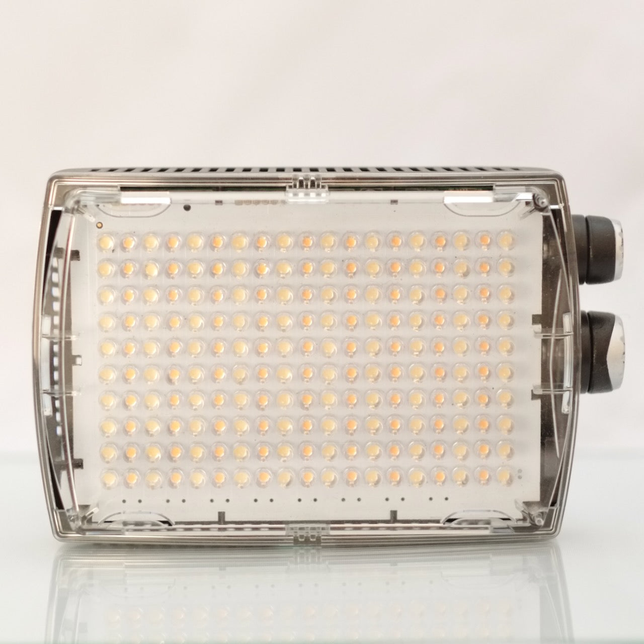 A compact camera-mounted LED floodlight with fully dimmable, flicker-free 540lux output. Colour temperature is continuously adjustable from 3200k-5600k with a convenient dial. This rental includes: