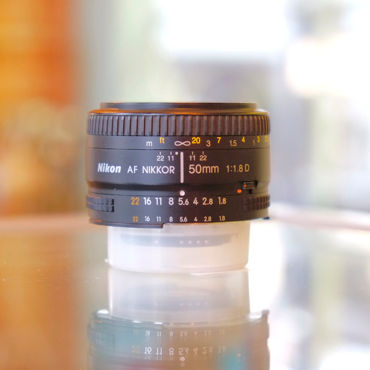 The Nikon 50mm f1.8D AF Nikkor is a nice, compact standard lens for film and digital Nikon F-mount SLRs. The autofocusing system in this lens requires an in-camera focusing motor: it will mount to non-motor SLRs like the 3000 and 5000 series, but it won't autofocus. In excellent condition, with clean glass and only very minor cosmetic wear.