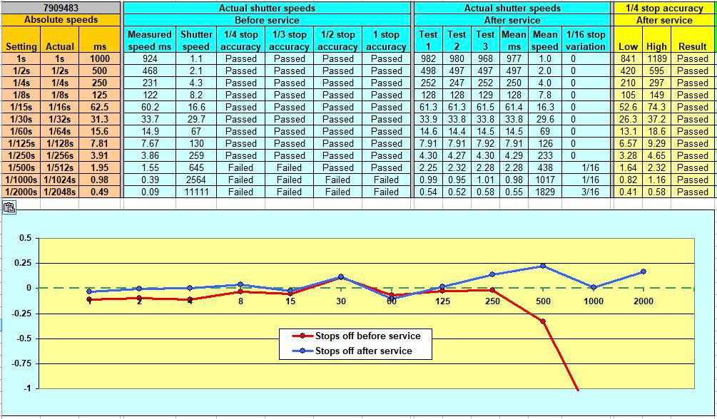 - Calibrated all shutter speeds to within 1/4rd stop accuracy, see screen capture