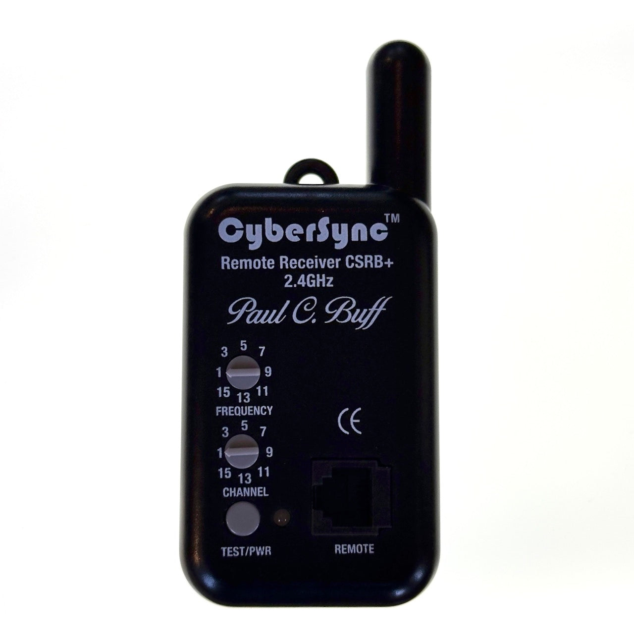 The CSRB+ receiver is compatible with Paul C Buff Cybersync triggers (not included) and provides the ability to choose frequency and channel for more complex setups than the basic CSRBs. It also connects to AlienBees and White Lightning units via RJ11 cord (included) for remote adjustment with compatible transmitters (sold separately.) Standard strobes can be triggered with the included 1/4" or 1/8" miniplug connectors. Please note: the receivers do not have hot shoes, so your flash needs some way to accept a remote cable. Basically every studio strobe has this connection, but not all camera-mounted lights do, so check first.
