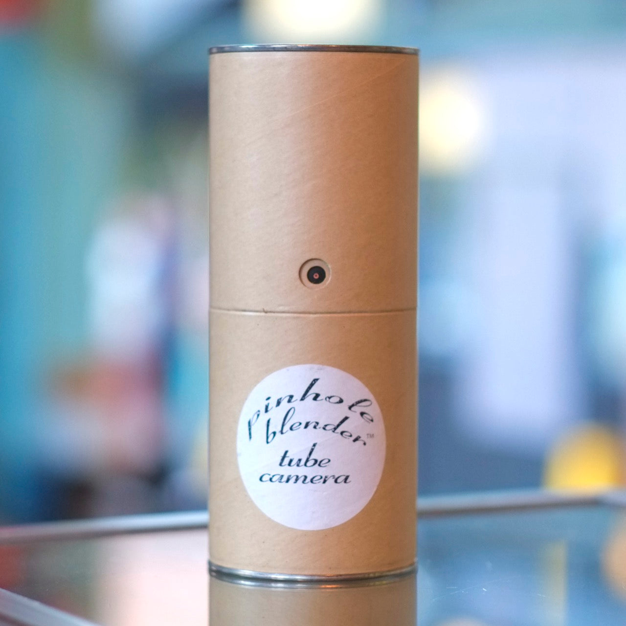This camera is called a Pinhole Blender because it's a pinhole camera, and because it's theoretically designed to "blend your subject into a collaged panorama," though it's unclear how to accomplish that particular feat. This camera is designed for 5x7 enlarging paper, and the company also makes a series of 35mm format cameras, which might make the panorama thing more plausible. Nevertheless, you can still take regular pinhole photos with this one, even if there's no blending involved. It has a 0.3mm pinhole with an effective aperture of f250 and a curved film plane, which produces a fisheye-like distortion.