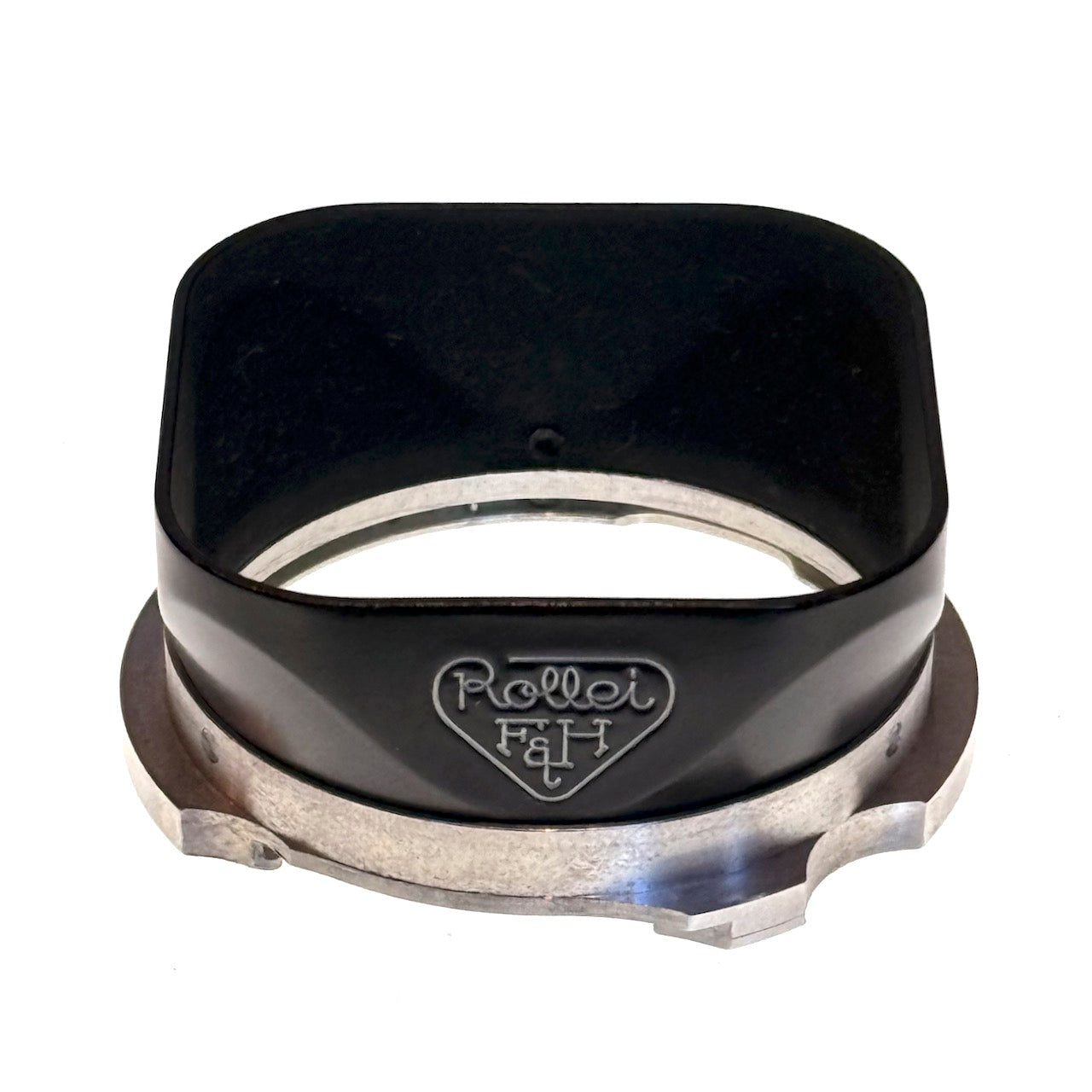 This Rollei lens hood for Bay 2 is in excellent condition, with only light cosmetic wear. Includes leather case.