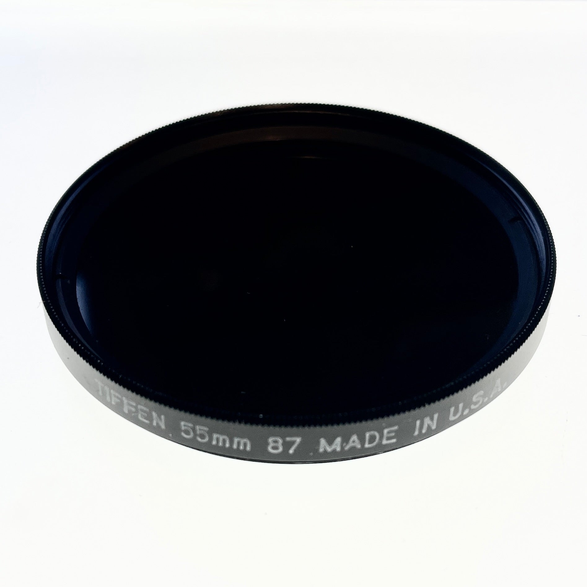The Tiffen #87 Infrared Glass Filter for 55mm filter thread is for black and white infrared film when you only want to transmit the infrared spectrum and none of the visible spectrum.