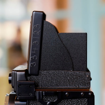 This Yashica 124G is just back from a complete CLA and in nearly-new cosmetic condition, except for- and I am going to take a few breaths to try to calm down before I continue this description- an ID number engraved on the side of the viewfinder. I am not going to say any more about it because this is a family website.